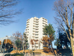 長い階段を登ると、ニョキニョキと伸びる高層ポイントハウスが姿を現す。尾根幹線までの広大な土地に、諏訪団地は存在する。